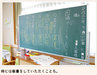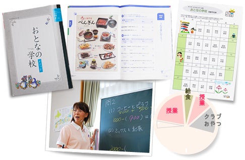 皆様がよく御存じの話題、季節の野菜や懐かしい曲、漢字の成り立ちなど、各教科で昔を思い出したり、新たに学べる刺激的な時間を授業として過ごしていただけます。